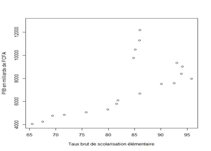 Les graphiques suivants montrent la corrélation qui existe entre le PIB et les différents taux de scolarisation au Sénégal.