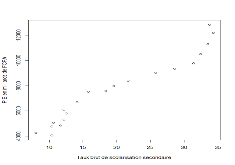 Graphique 2 : Corrélation entre PIB et Taux de scolarisation secondaire